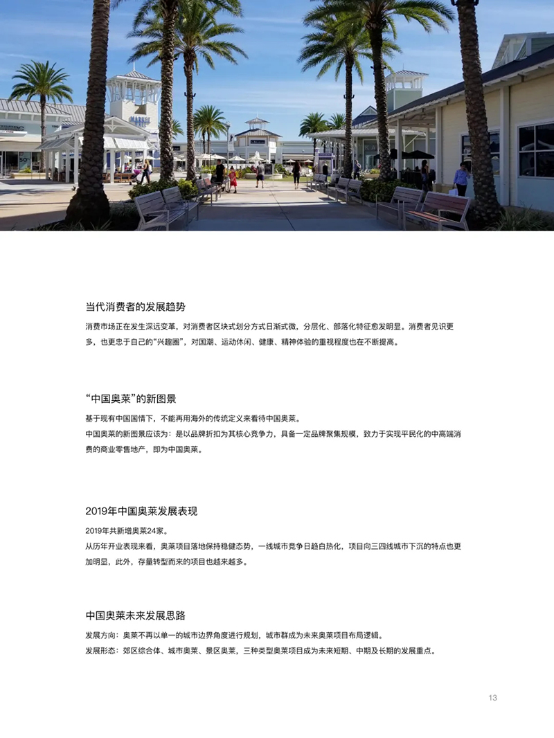 在經(jīng)濟(jì)全球化深?發(fā)展和新消費(fèi)時代迅猛邁進(jìn)的今天,奧特萊斯作為新零售的典型代表,仍在全球范圍內(nèi)保持著快速、穩(wěn)定發(fā)展的態(tài)勢,且已逐步拓展至休閑、健康、醫(yī)療、旅游、電子商務(wù)等多個領(lǐng)域及行業(yè),充分顯示出旺盛的?命?和?限的發(fā)展活力。