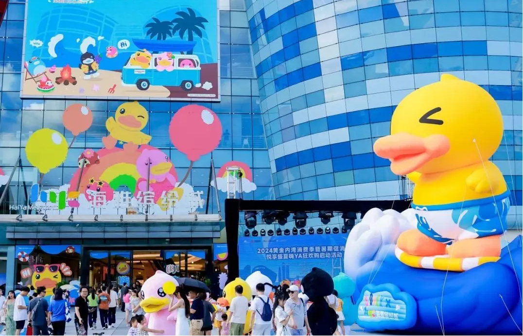 時(shí)值暑期,深圳海雅繽紛城邀請(qǐng)B.Duck品牌創(chuàng)辦人“鴨爸爸”許夏林,以及市/區(qū)商務(wù)局、中山商務(wù)局、新安街道辦、市零售商業(yè)行業(yè)協(xié)會(huì)等官方代表,共同開啟了2024黃金內(nèi)灣消費(fèi)季暨暑期促消費(fèi)——悅享盛夏嗨Ya狂歡購(gòu)系列活動(dòng)的序幕,成功完成中國(guó)第一自主IP B.DUCK小黃鴨的“B.DUCK嗨YA狂歡節(jié)全國(guó)首展”。