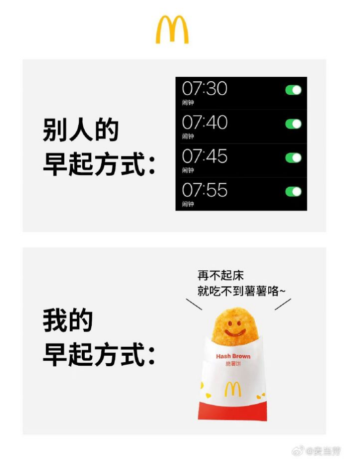 對于此,麥當(dāng)勞也抓住了自帶共鳴的打工人群體,畢竟各大寫字樓附近,總會(huì)有麥麥的身影,在北京更是被戲稱為“老北京的傳統(tǒng)美食”。