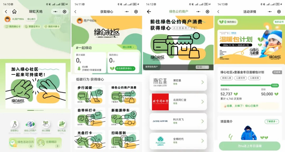 再比如,上海新天地開發(fā)上線了消費(fèi)者“綠心”會(huì)員碳賬戶,在線下結(jié)合綠色餐廳大賞活動(dòng),推廣有機(jī)低碳的餐飲經(jīng)營(yíng)。“綠心社區(qū)”的上線為商業(yè)與消費(fèi)者之間搭建了一條綠色的通道,令可持續(xù)行為可積累、可觸達(dá)、可量化、可兌換,培養(yǎng)消費(fèi)者從意識(shí)、認(rèn)知到生活方式邁向綠色的轉(zhuǎn)變。